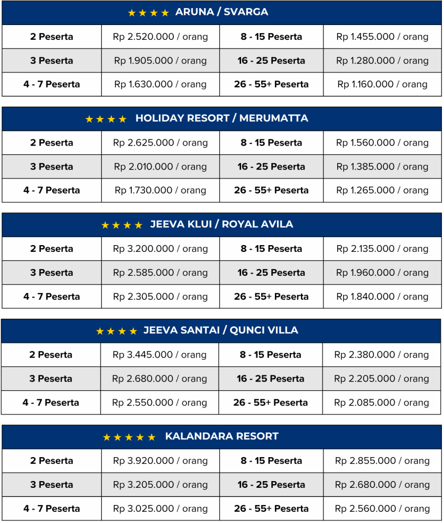 | Hotel 1 malam termasuk makan pagi | |
